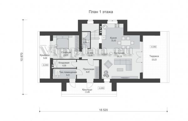 | Размеры дома: | 10.87м×18.52м |